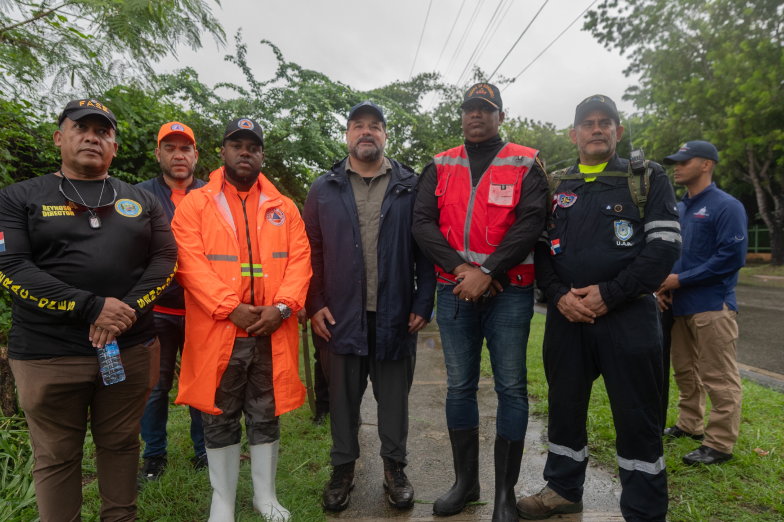 La visita, desarrollada en sectores del municipio de Santo Domingo Norte, forma parte de las acciones coordinadas por el gobierno del presidente Luis Abinader, con el propósito de reducir el impacto de las lluvias y brindar asistencia a las comunidades más afectadas.