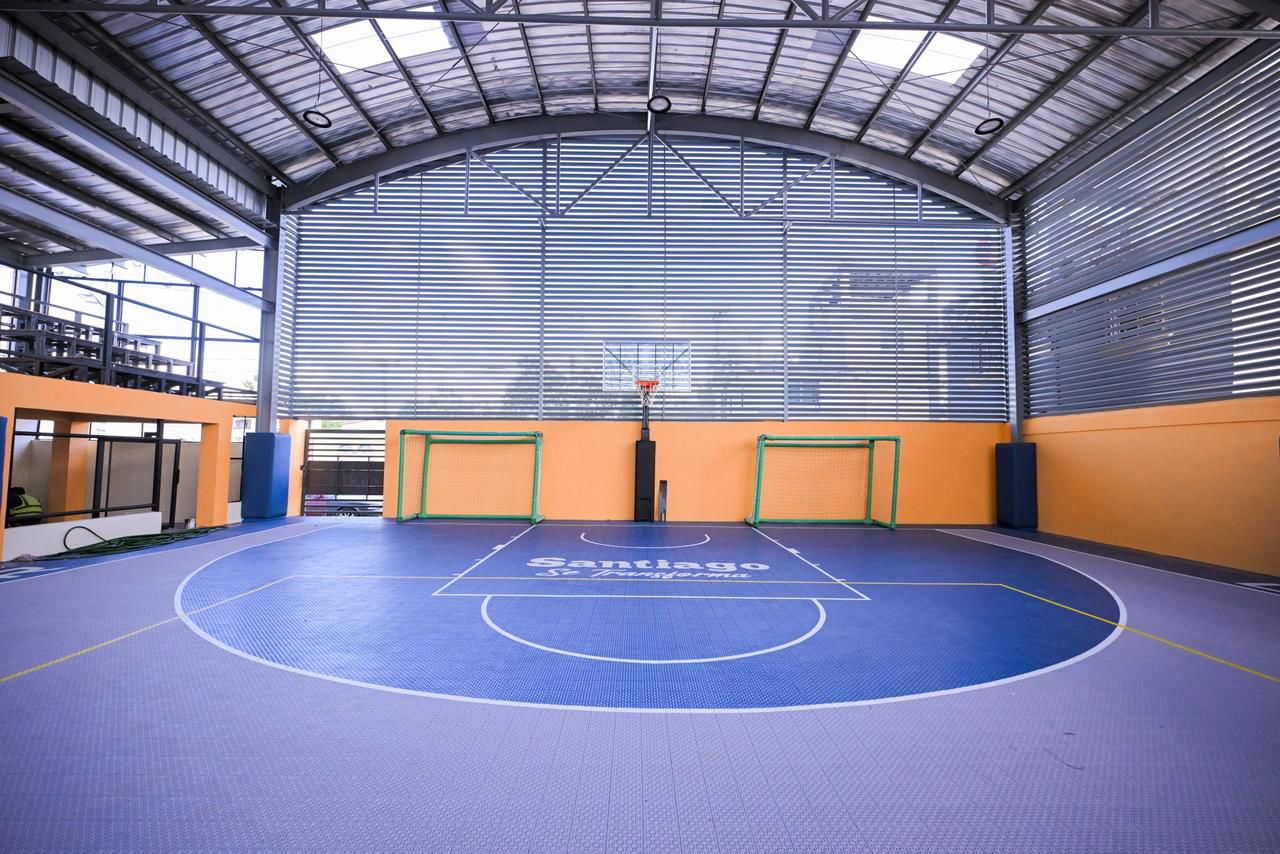 Además, un techado multiuso con zapatas, muros y columnas en hormigón, instalaciones eléctricas, baños, dos entradas principales para controlar la seguridad, jardinería, herrería y misceláneos para la práctica de varias disciplinas deportivas.