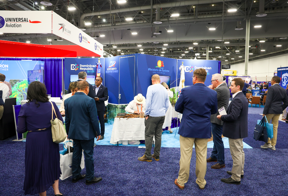 Empresas con base dominicana, como Grupo Punta Cana, Panorama Jets y Universal Aviation RD, también participaron en la feria mostrando los servicios que ofrecen en el país.