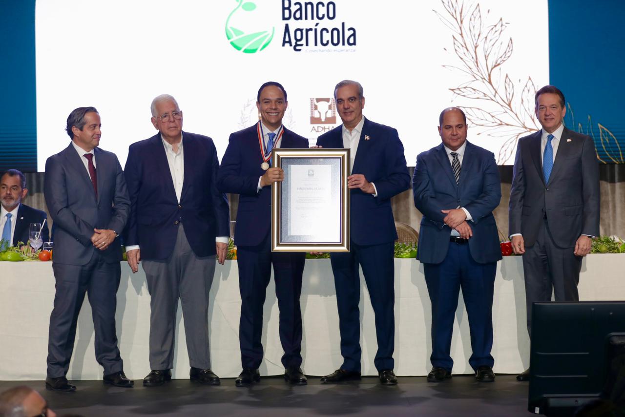 Durante la entrega de la Medalla de Honor al Mérito Agropecuario, el presidente Abinader estuvo acompañado del ministro de Industria, Comercio y Mipymes, Víctor Bisonó. En la ceremonia se premiaron las siguientes categorías: Cultivo de Tabaco: Matías López; Cultivo de Café: Ángel Custodio; Avicultura: PETS; Agroindustria: Font Gamundi; Ganadería de Carne: José Eduardo Reyes; Hortofrutícola: Edward Abreu; Cultivo de Arroz: Marcos Rodríguez; Porcicultura: Amílcar Fernández; Innovación Agropecuaria: Hacienda Ochoa; Terminación de Novillos: Orlando Arias; Ganadería de Leche: José Raulín Bueno Veras, y Cultivo de Cacao: Juan Francisco Abreu.
