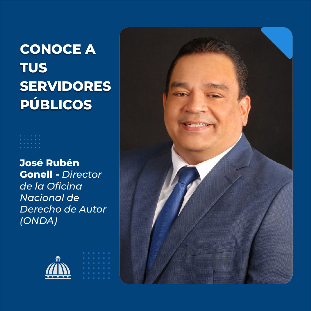 José Ruben Gonell Cosme es el director de la Oficina Nacional de Derecho de Autor. Es licenciado en Ciencias Jurídicas y en Administración de Empresas por la Universidad Nacional Pedro Henríquez Ureña (UNPHU). Cuenta con una maestría en Derecho Civil y Procesal Civil, de la Universidad Autónoma Santo Domingo (UASD).