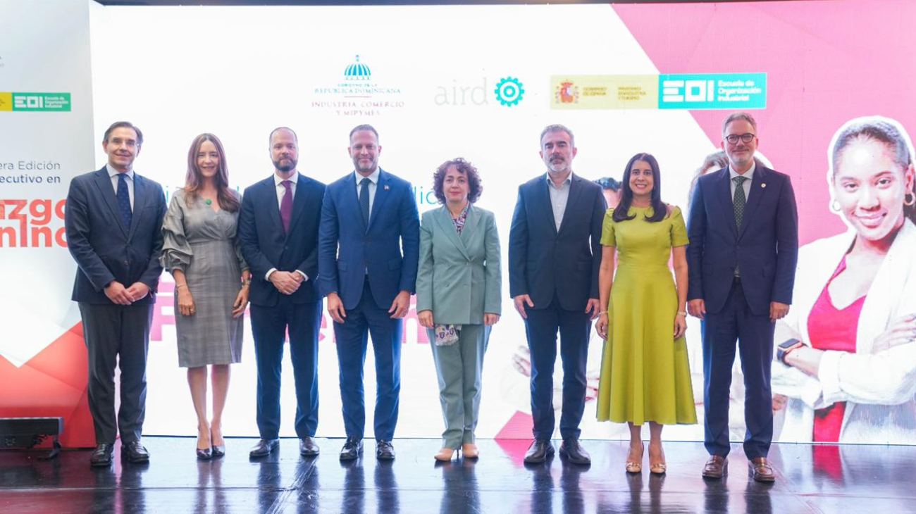 El acto estuvo encabezado por los viceministros de Desarrollo Industrial, Gianna Franjul, y de Comercio Exterior, Daniel Peña, en representación del ministro de Industria, Comercio y Mipymes, Yayo Sanz Lovatón; así como por la embajadora de España en la República Dominicana, Lorea Arribalzaga Ceballos; el director de la EOI, Diego Crescente, y el primer vicepresidente de la AIRD, Juan José Attias, quienes destacaron la importancia de fortalecer el liderazgo femenino en el sector productivo como motor de desarrollo económico y transformación social.