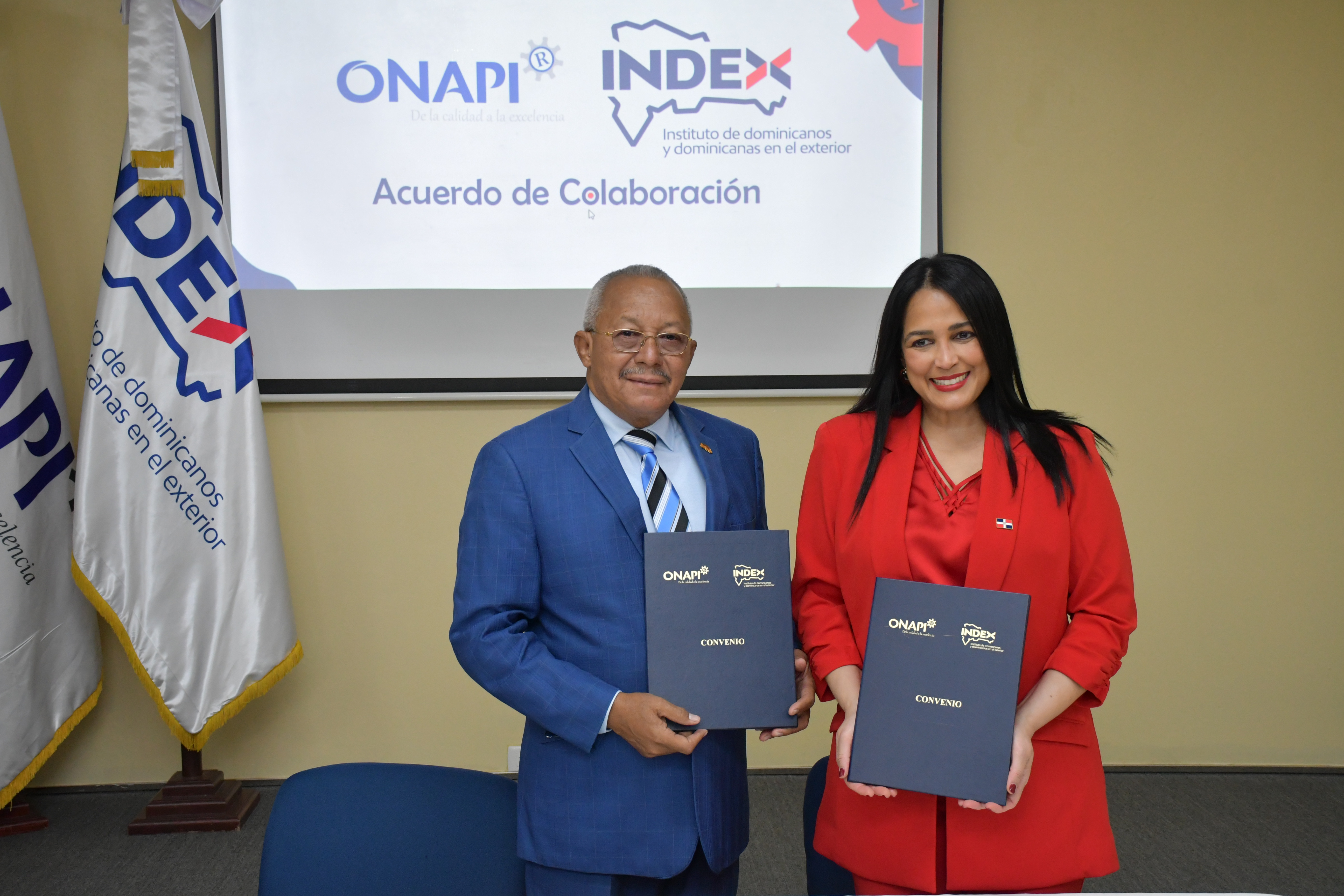 Santo Domingo.- La Oficina Nacional de la Propiedad Industrial (Onapi) y el Instituto de Dominicanas y Dominicanos en el Exterior (Index) firmaron un acuerdo de colaboración interinstitucional, con el propósito de proteger la innovación de los dominicanos en el exterior, en el marco de sus misiones institucionales.
