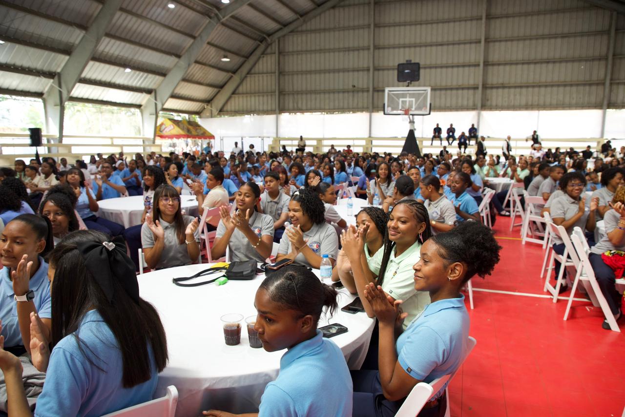 Durante un almuerzo con 350 jóvenes realizado en el Politécnico Nuestra Señora de La Altagracia, sector Los Pajaritos, el presidente Abinader llamó a los estudiantes a aprovechar las oportunidades que ofrece el Gobierno para continuar sus estudios profesionales a través del programa Beca tu Futuro, que contempla becas en universidades nacionales e internacionales.