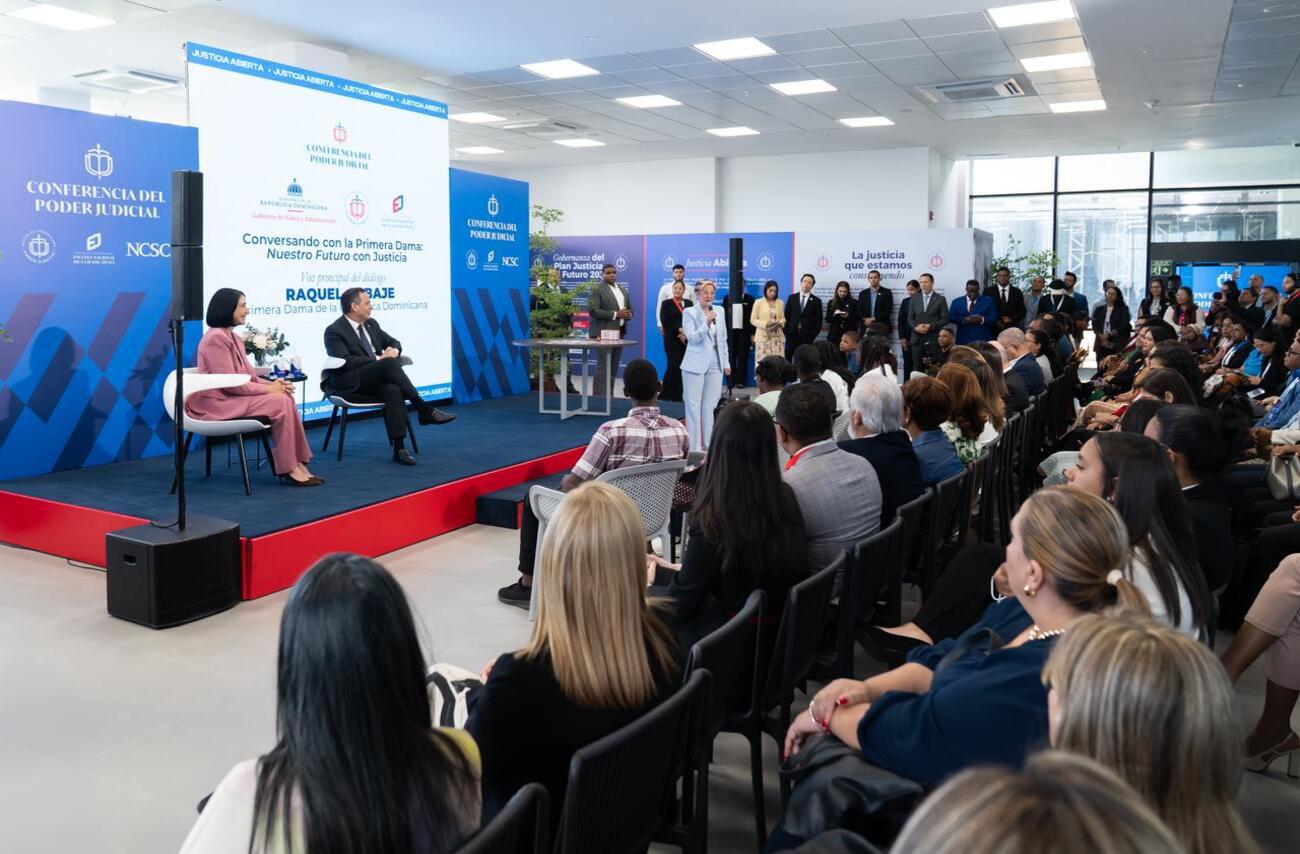 Santo Domingo.- En un ambiente cercano y de familiaridad, la primera dama de la República, Raquel Arbaje, y el juez presidente de la Suprema Corte de Justicia (SCJ), Henry Molina, conversaron con un grupo de niños, niñas y adolescentes sobre el futuro de la justicia en República Dominicana.