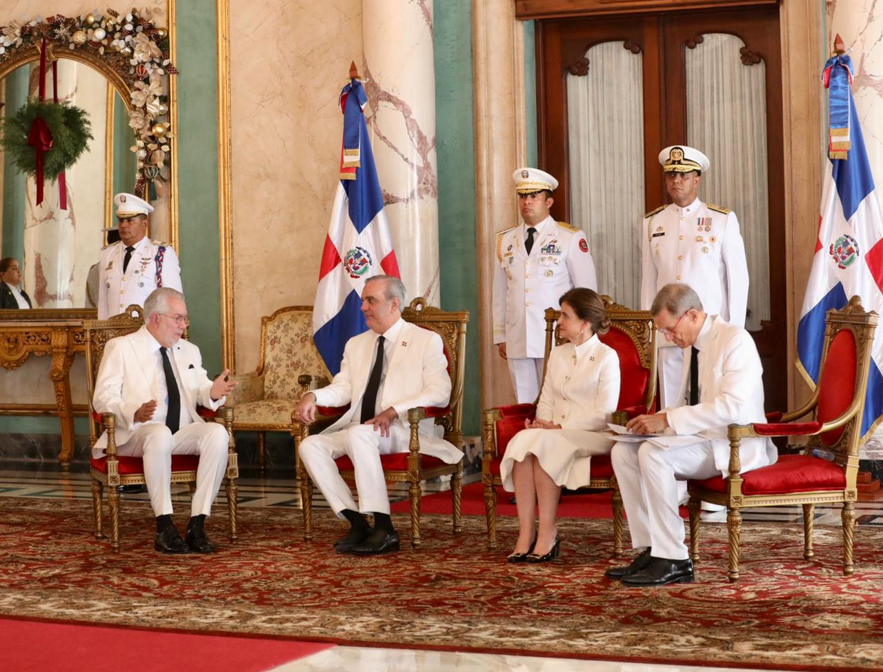 Durante la ceremonia, el jefe de Estado estuvo acompañado por la vicepresidenta Raquel Peña y el canciller Roberto Álvarez, quienes participaron en la recepción de los diplomáticos provenientes de la Delegación de la Unión Europea, la Soberana y Militar Orden de Malta, la República de la India, los Estados Unidos de América, el Reino de Noruega, la República Checa y la República de Belarús.