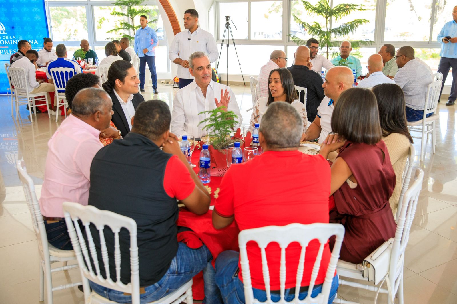 Al encabezar el almuerzo con periodistas, camarógrafos y fotógrafos que cubren fuente del Palacio Nacional, el jefe de Estado, acompañado del ministro de Defensa, teniente general Carlos Antonio Fernández Onofre; del titular de la Dirección de Estrategia y Comunicación Gubernamental (Diecom), Félix Reyna, y el de la Dirección de Prensa del Presidente, Carlos Alberto Caminero, así como del subdirector de Diecom, Abel Guzmán Then, agradeció el trato y apoyo a su gestión.