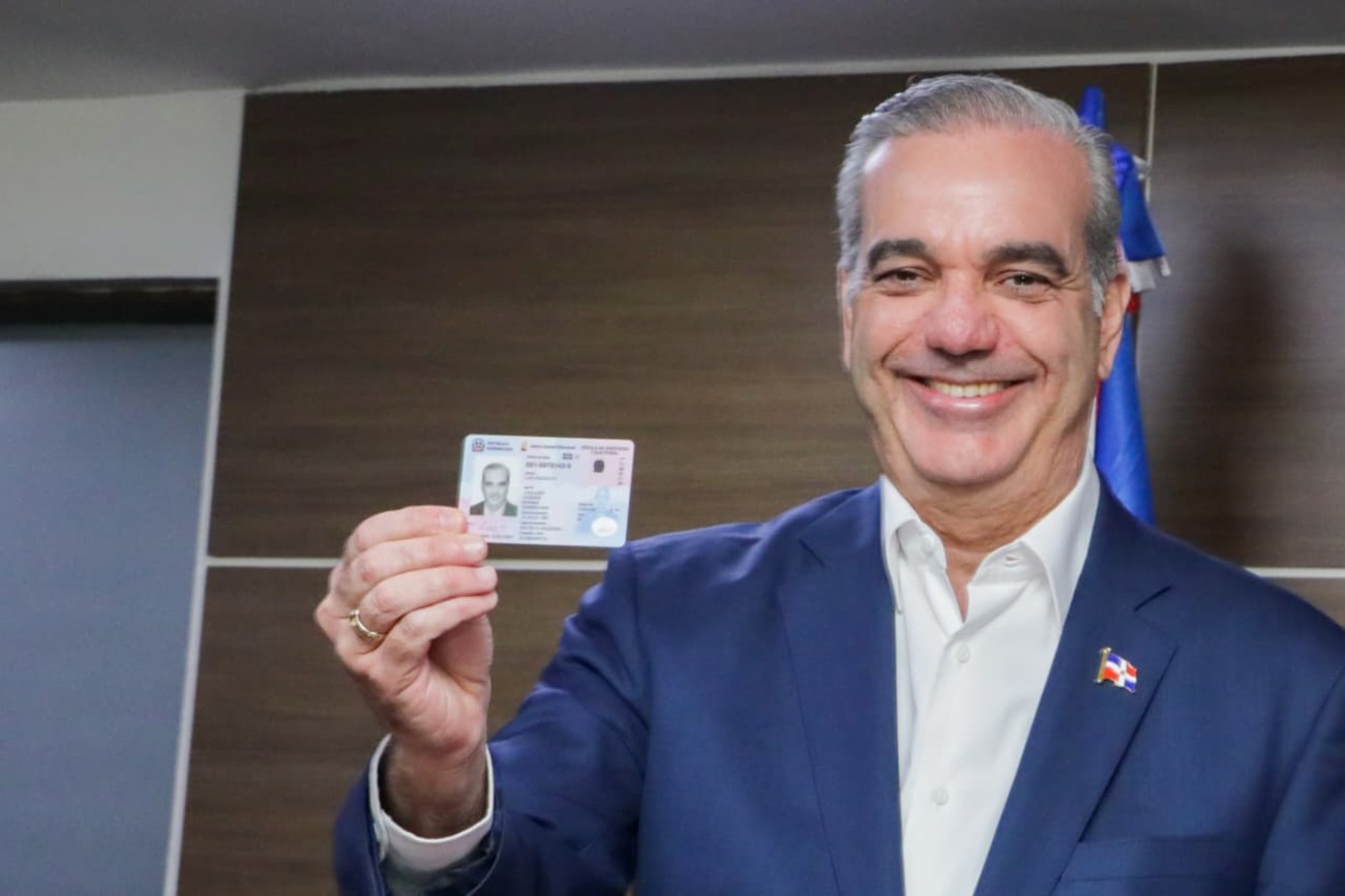 Santo Domingo.– En un acto que marca el inicio formal de la renovación del documento de identidad nacional, el presidente Luis Abinader y la primera dama Raquel Arbaje recibieron este lunes de manos de la Junta Central Electoral (JCE) la primera cédula de identidad y electoral.