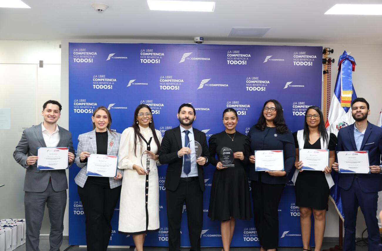 El acto de premiación contó con la participación de las miembros del Consejo Directivo de ProCompetencia, Keryma Marra y María Elisa Holguín; así como del director ejecutivo, Víctor Benavides, y de José Beltré, director de Promoción y Abogacía de la Competencia, entre otras autoridades de la institución.